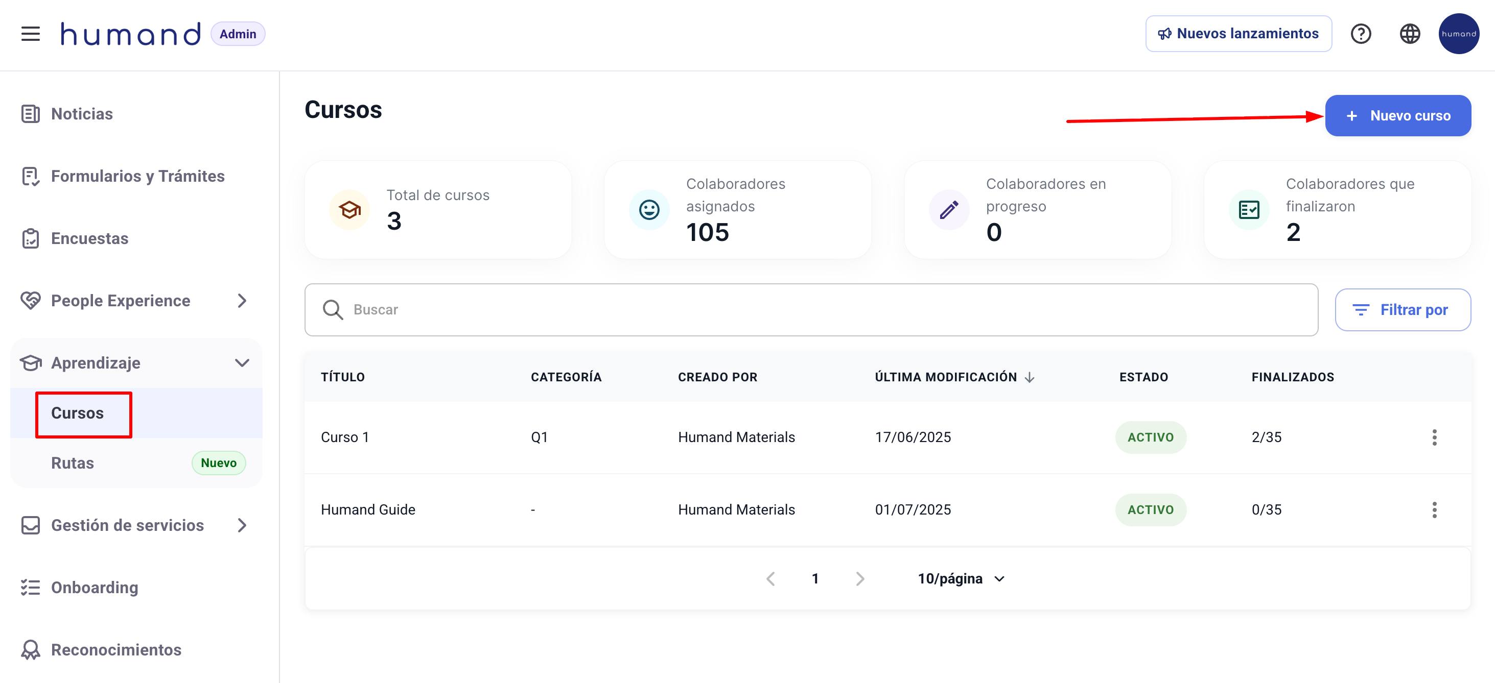 2. Ir a Aprendizaje > Cursos.