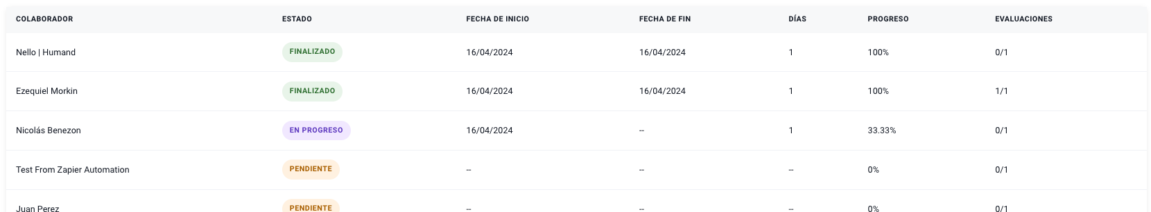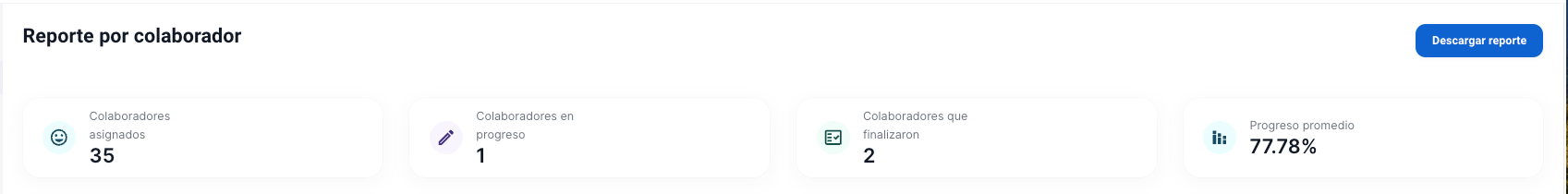 - La cantidad de colaboradores en progreso, es decir cuantos se encuentran completando el curso.