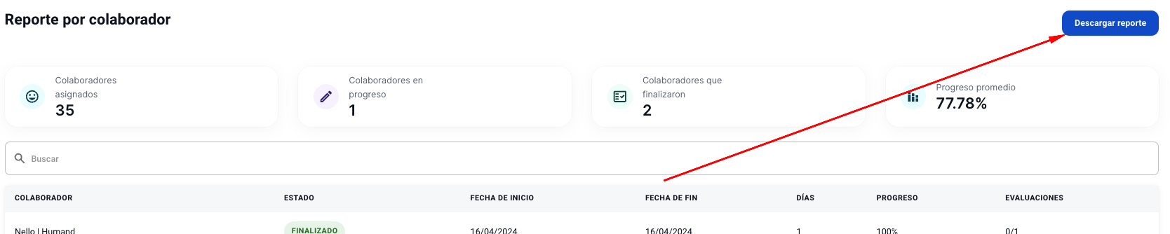 - Y el progreso promedio, es el progreso de los colaboradores que tienen el curso en progreso o finalizaron. Los que lo tienen pendiente no se contabilizan.