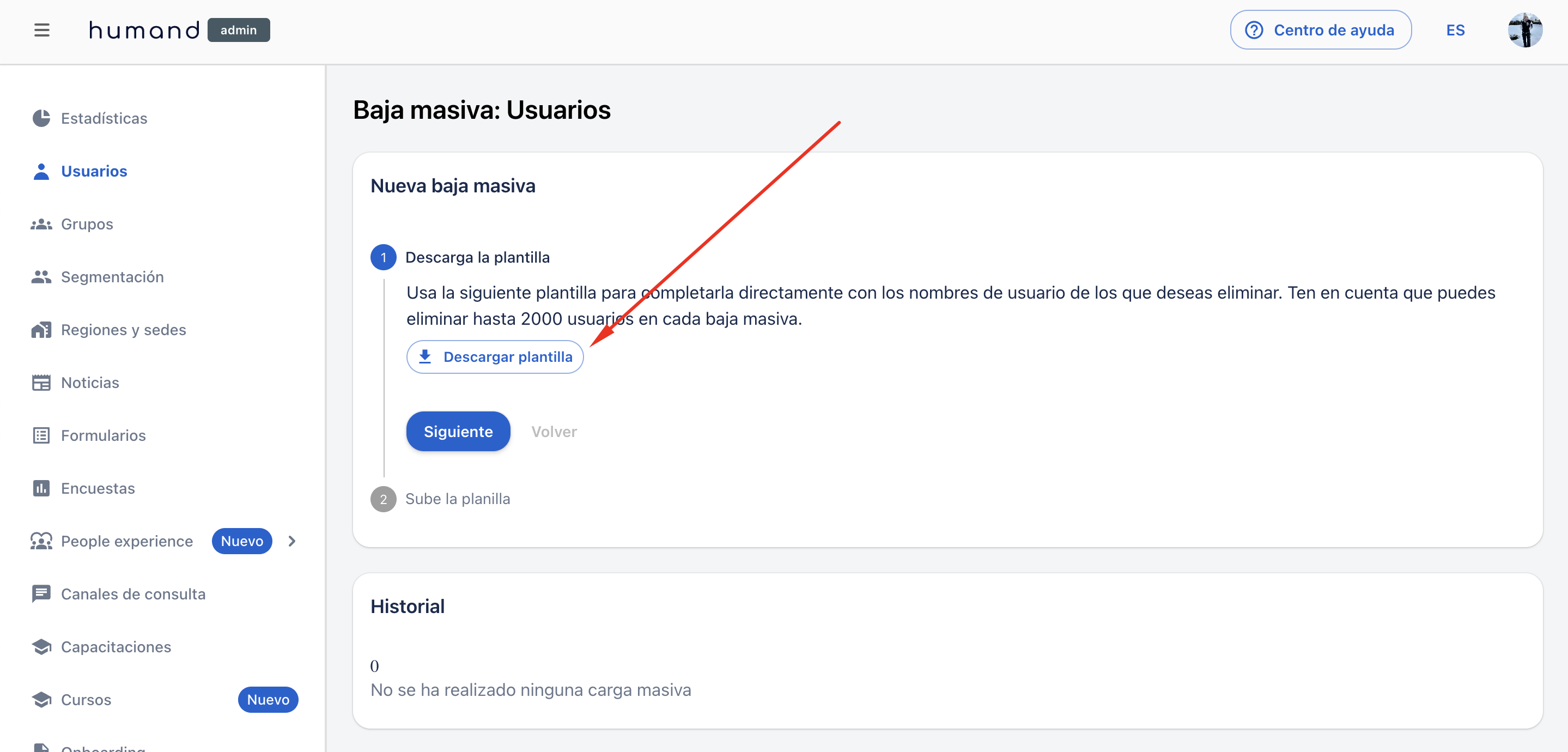 1. Ingresa a admin.humand.co > Usuarios.