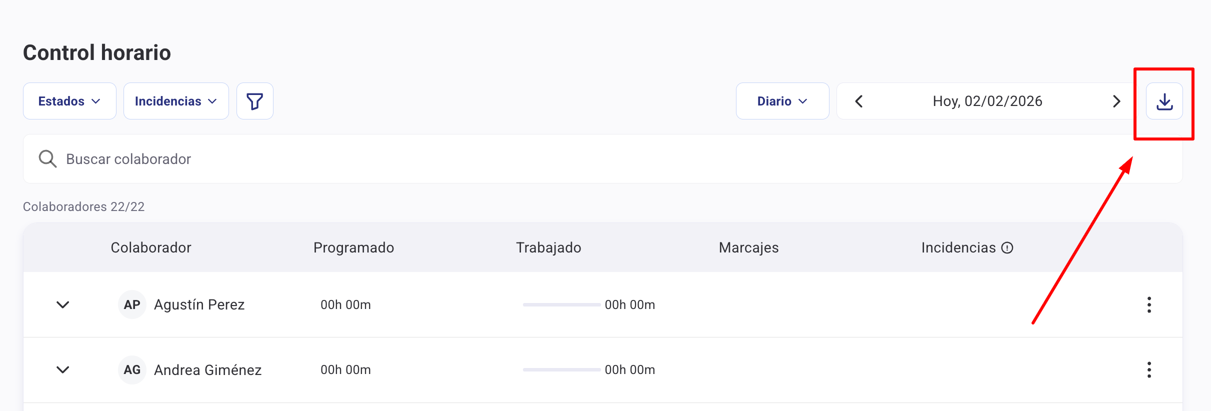 Luego de que los colaboradores hayan comenzado a registrar sus jornadas laborales existe la posibilidad de descargar reportes con la información de los mismos.