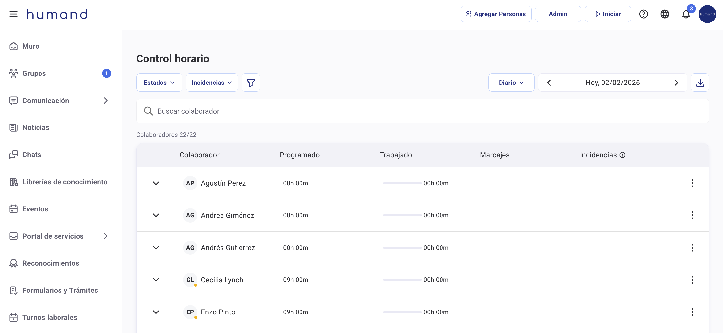 2. Aquí podrás visualizar los registros de horario de tus colaboradores.
