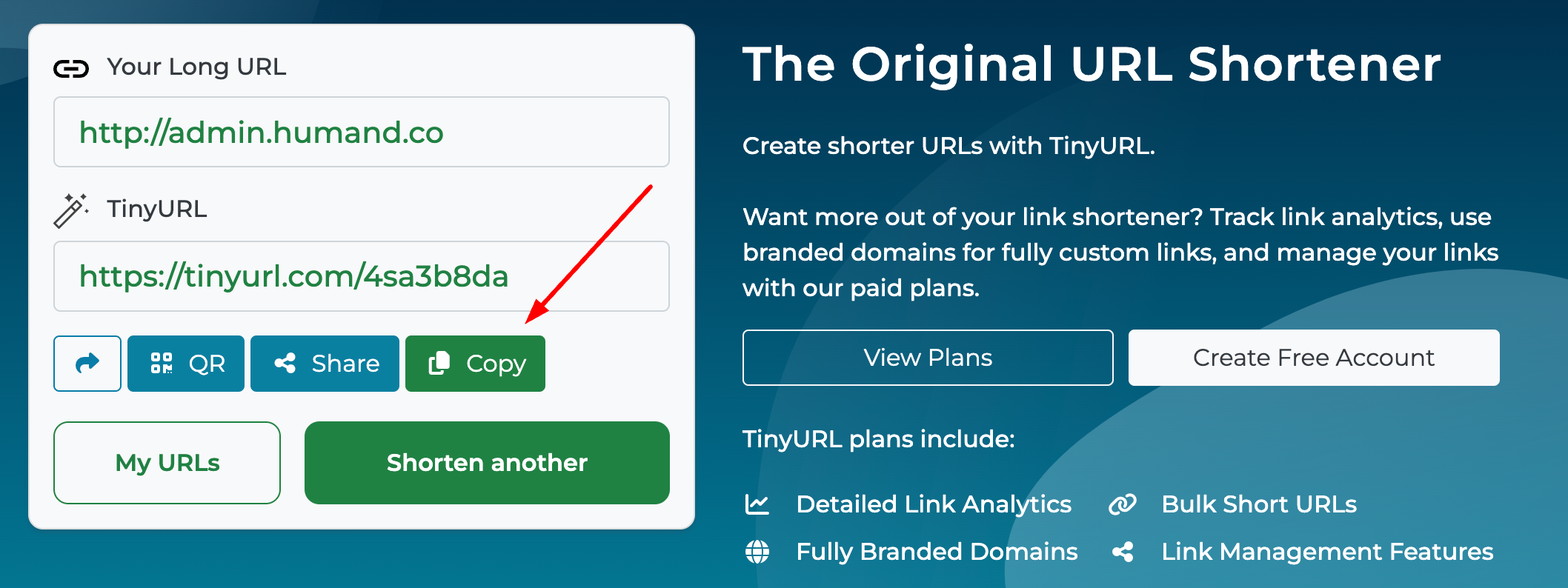 4. Por último, haz click en Copy para guardar el nuevo URL abreviado.