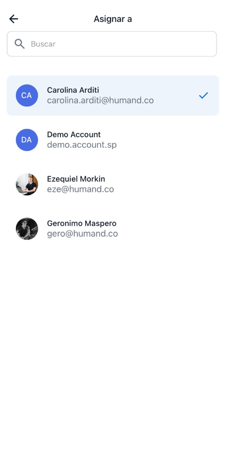 De la misma manera, es posible realizar una re-asignación masiva de solicitudes (únicamente entre solicitudes del mismo tipo de servicio), seleccionando las mismas y haciendo click en "Asignar a". - 1. Ingresar a Humand App.