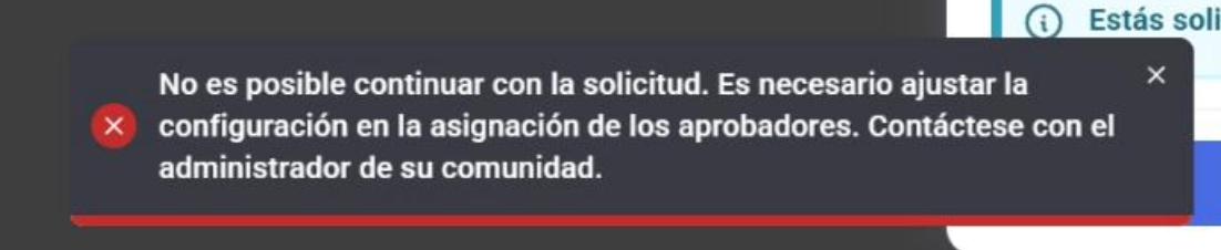 En caso de que, al realizar una solicitud, aparezca este cartel es porque el usuario no cumple con alguno de los requisitos del flujo de aprobación de la política que está solicitando.