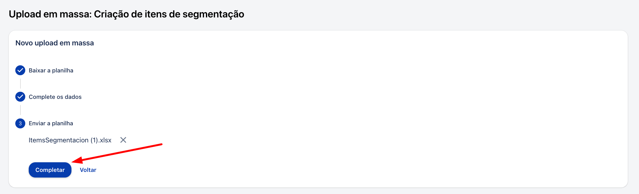 Para realizar uma criação em massa de itens de segmentação, você deve seguir estas etapas: