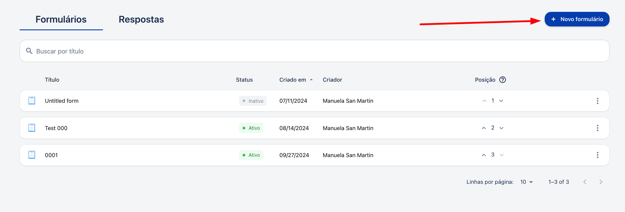3. Clique em “+ Novo formulário”.