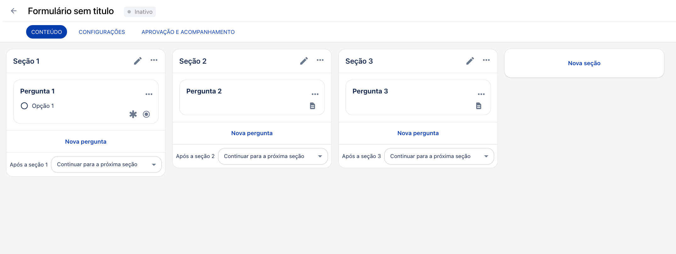 • Em cada formulário, você pode configurar se ele requer aprovação ou acompanhamento.