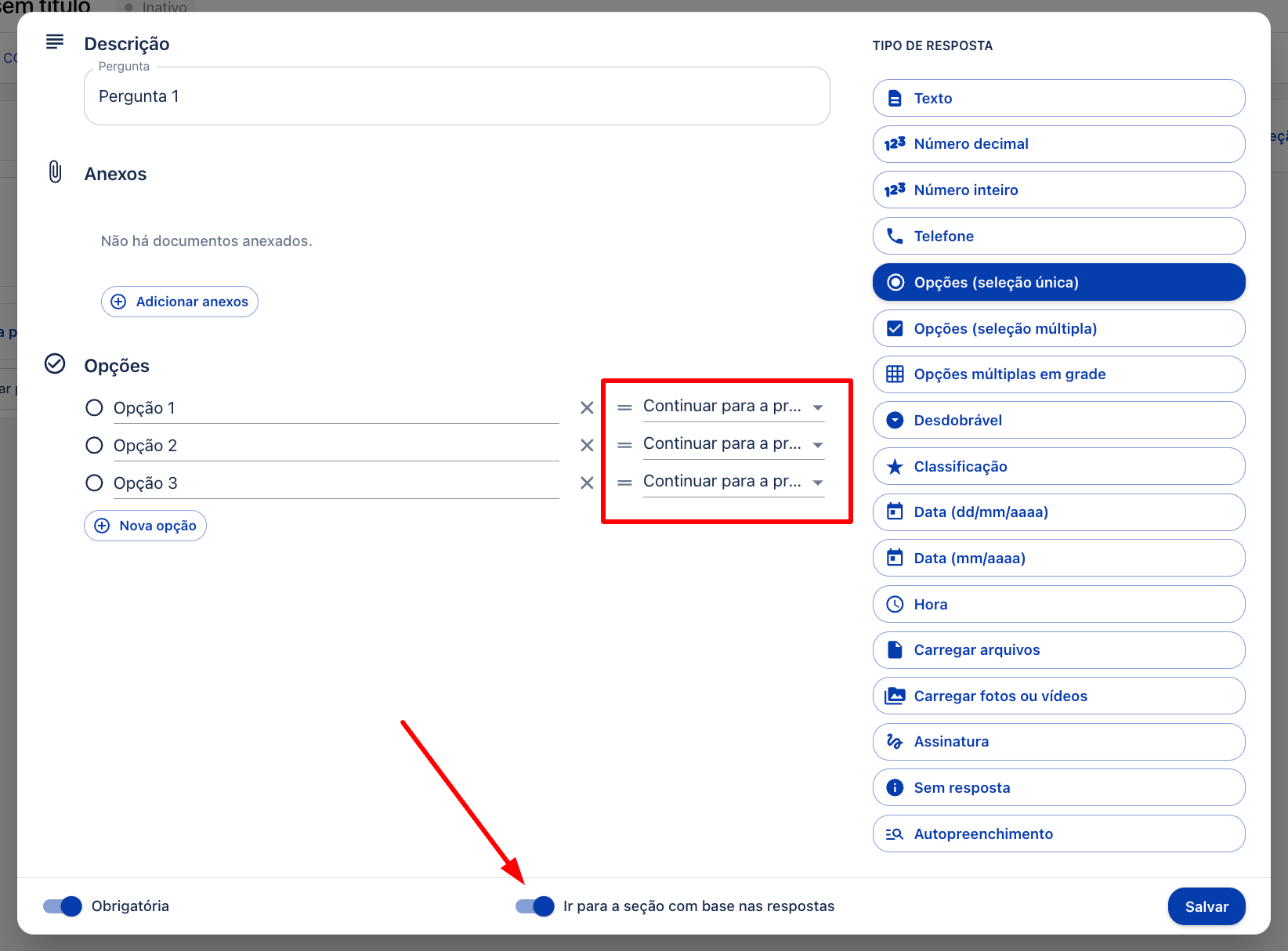 • Se desejar, torne a resposta obrigatória.
