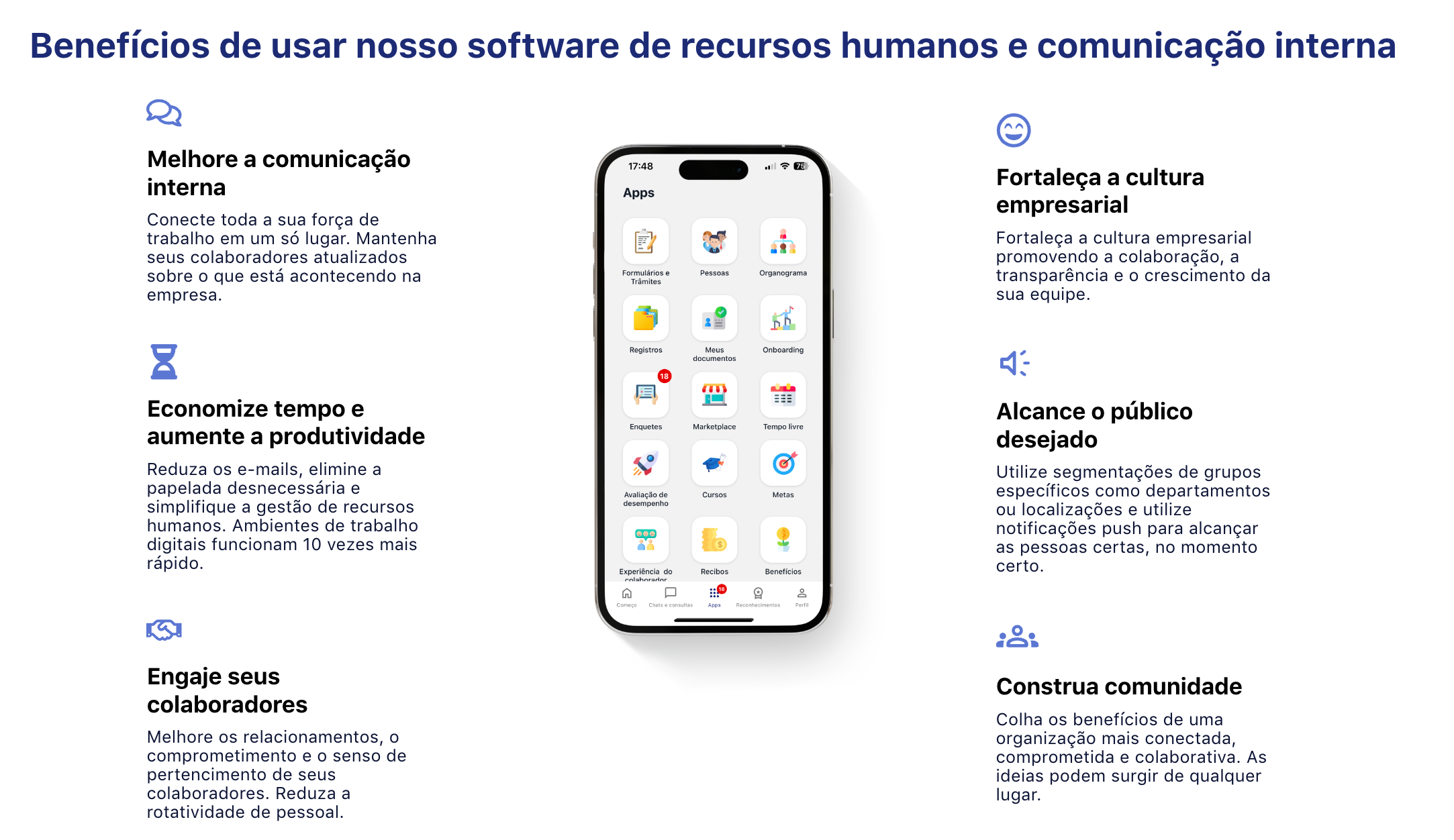 - Permite a digitalização e a humanização dos processos de gestão de pessoas,