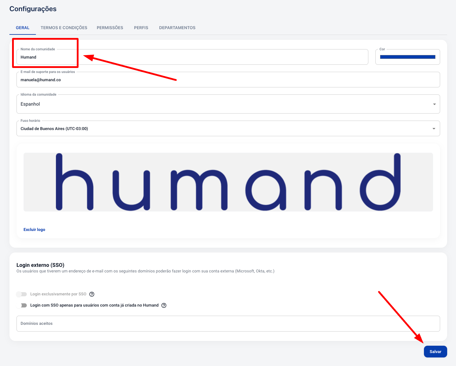 Para alterar o nome da comunidade, você deve seguir estas etapas: