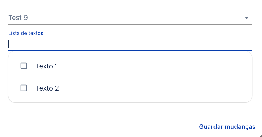 Lista de textos: vários textos podem ser carregados ou várias das sugestões podem ser selecionadas.