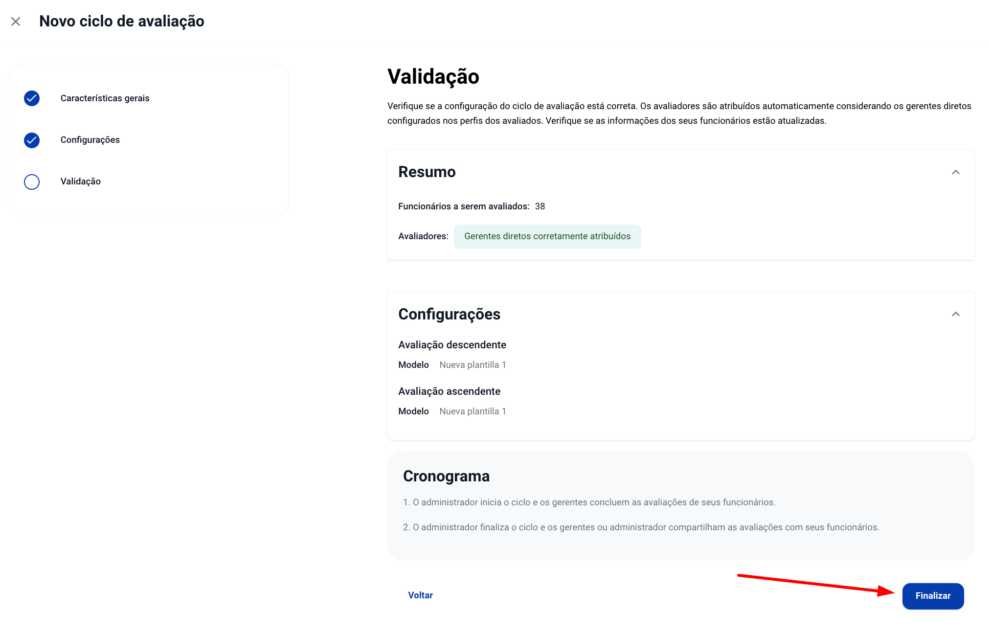 6. E é isso! Você configurou com sucesso um ciclo de avaliação de desempenho para sua comunidade.