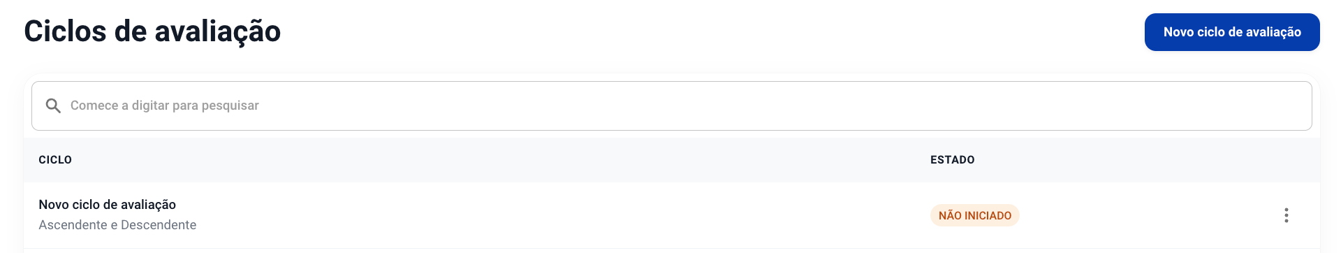 3. Clicar em Novo ciclo de avaliação.
