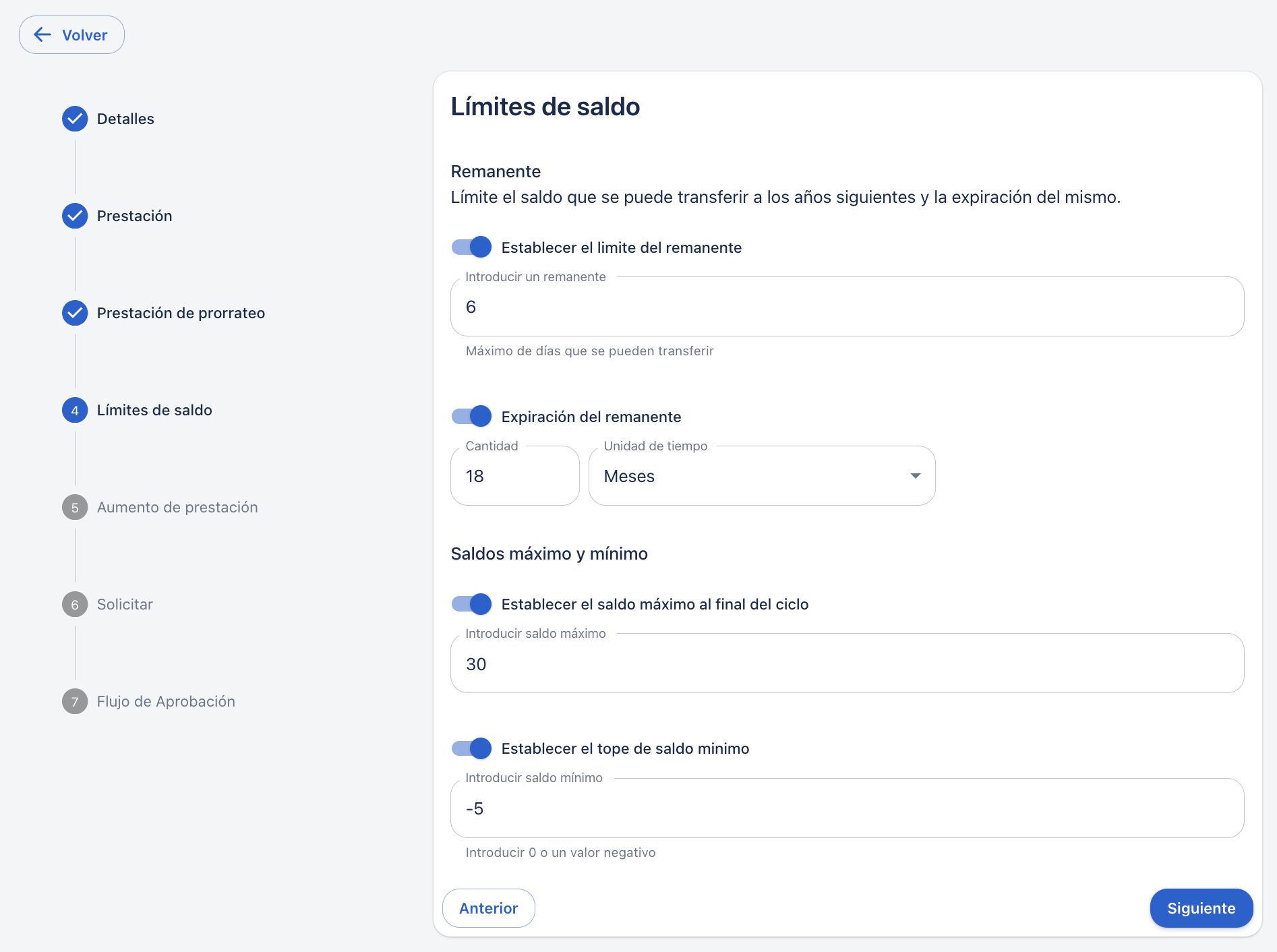 Também podem ser ativados os ajustes especiais para não permitir solicitações em função do saldo de outra política. -