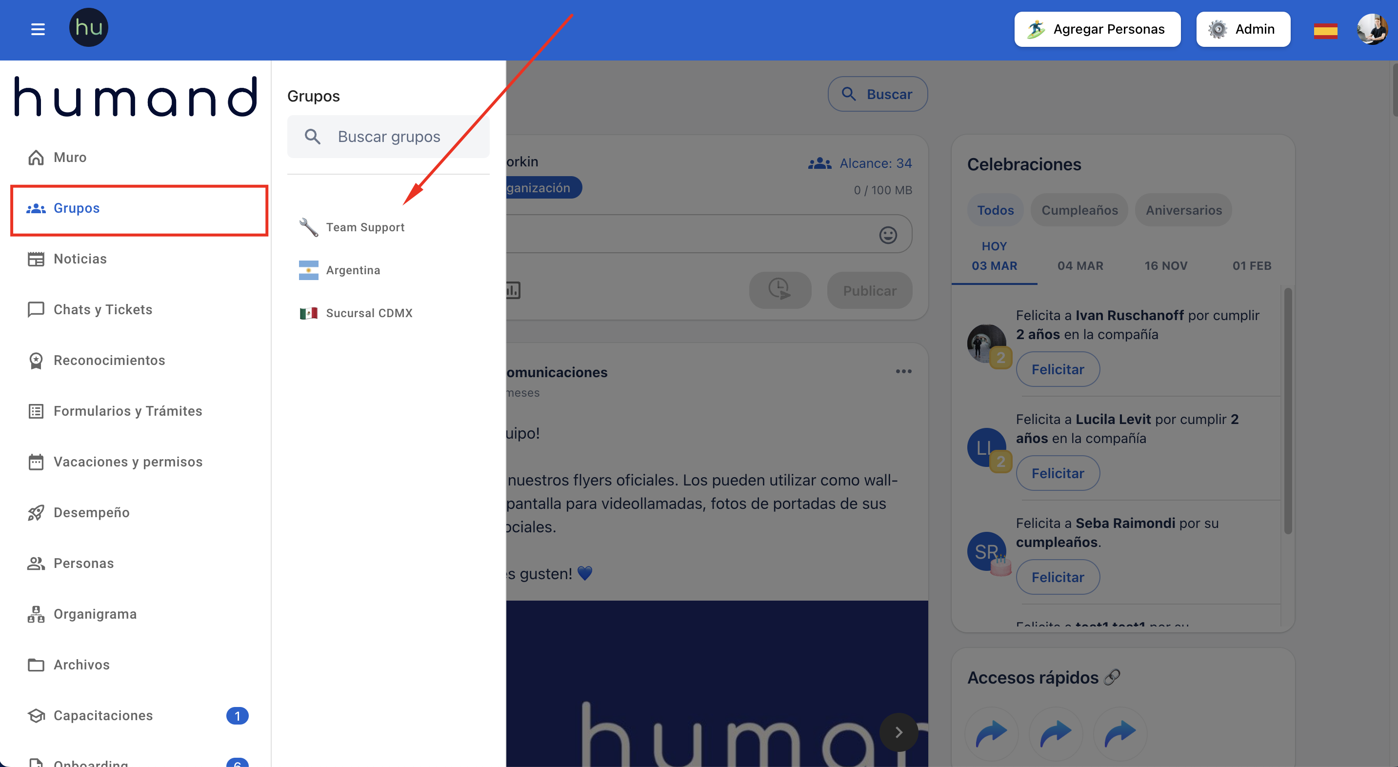 Dependendo das configurações que tenham sido realizadas pelos administradores da comunidade para cada grupo, poderás publicar no grupo ou apenas poderão publicar aqueles que sejam administradores do grupo.