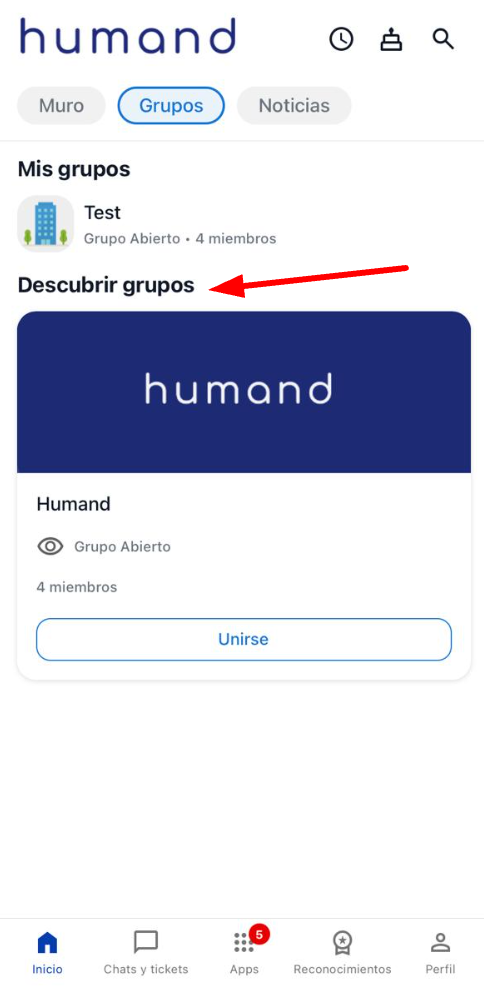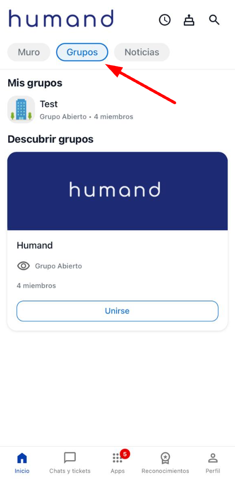 Acede à página principal na secção de Grupos que se encontra na parte superior, tal como Muro, Notícias e Marketplace.