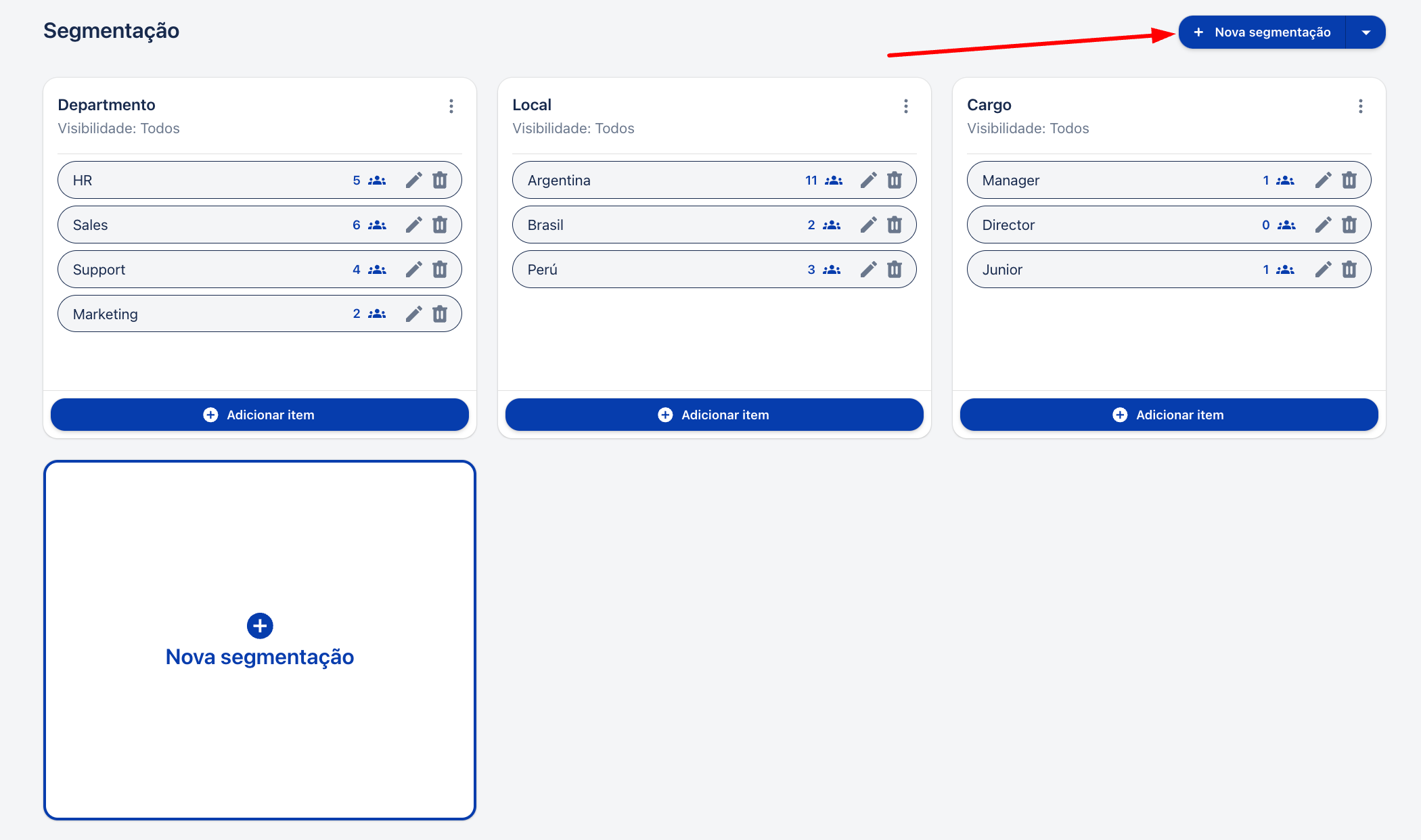 5. Você pode incluir itens de segmentação de Adicionar item.