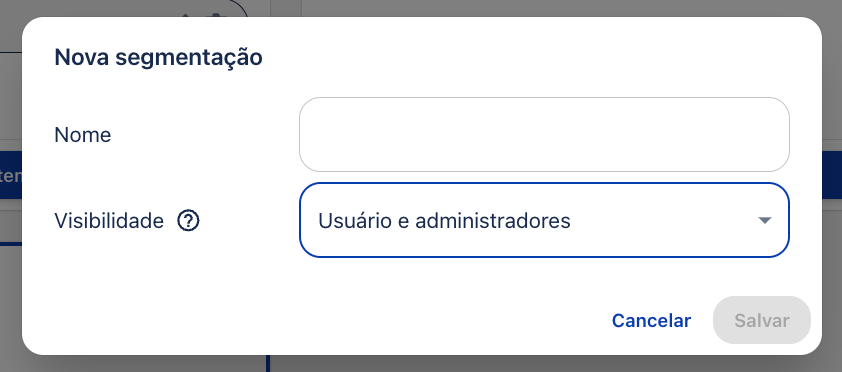 4. Agora, defina o nome da segmentação e determine quem verá esse campo no perfil do usuário (Todos, próprio usuário e administradores, somente administradores).