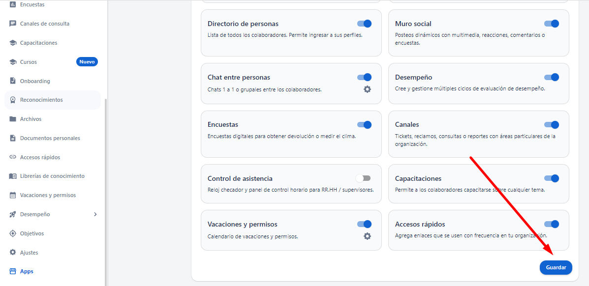 4. Finalmente, após ativar o botão, clicar em Guardar.