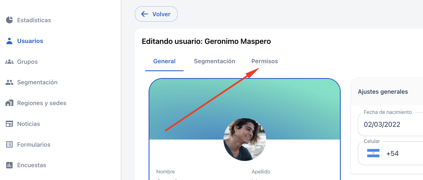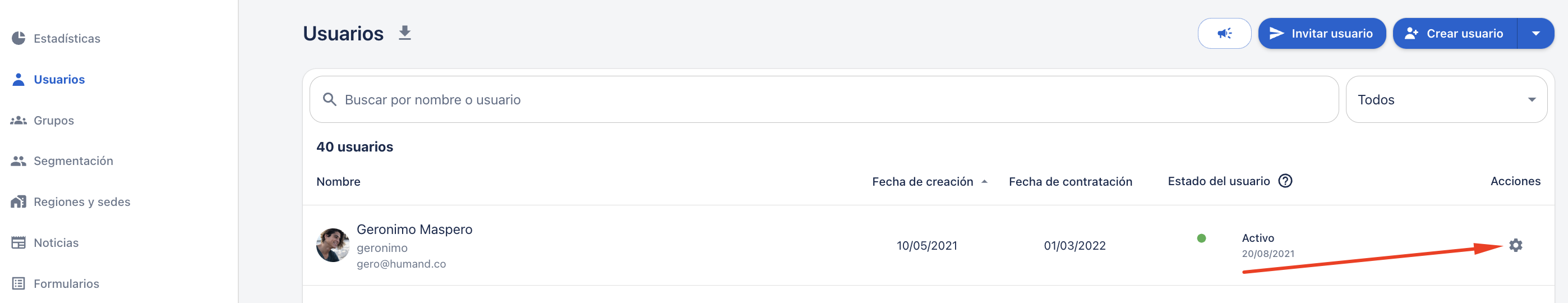 3. Identificar o utilizador e clicar na sua configuração ⚙️