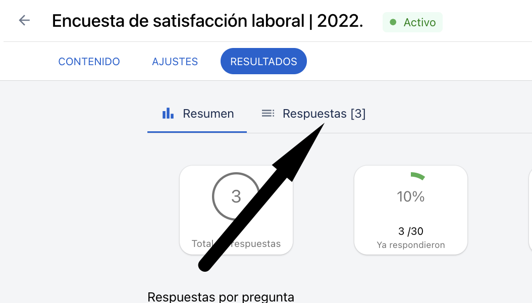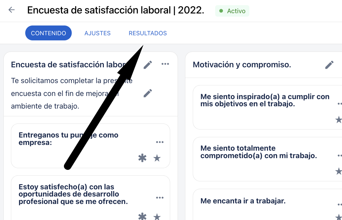 4. Uma vez dentro do questionário, clicar em Resultados.
