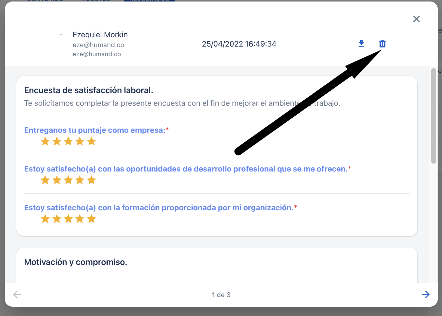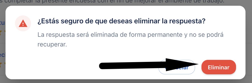 Para eliminar a resposta de um colaborador a um questionário deves: