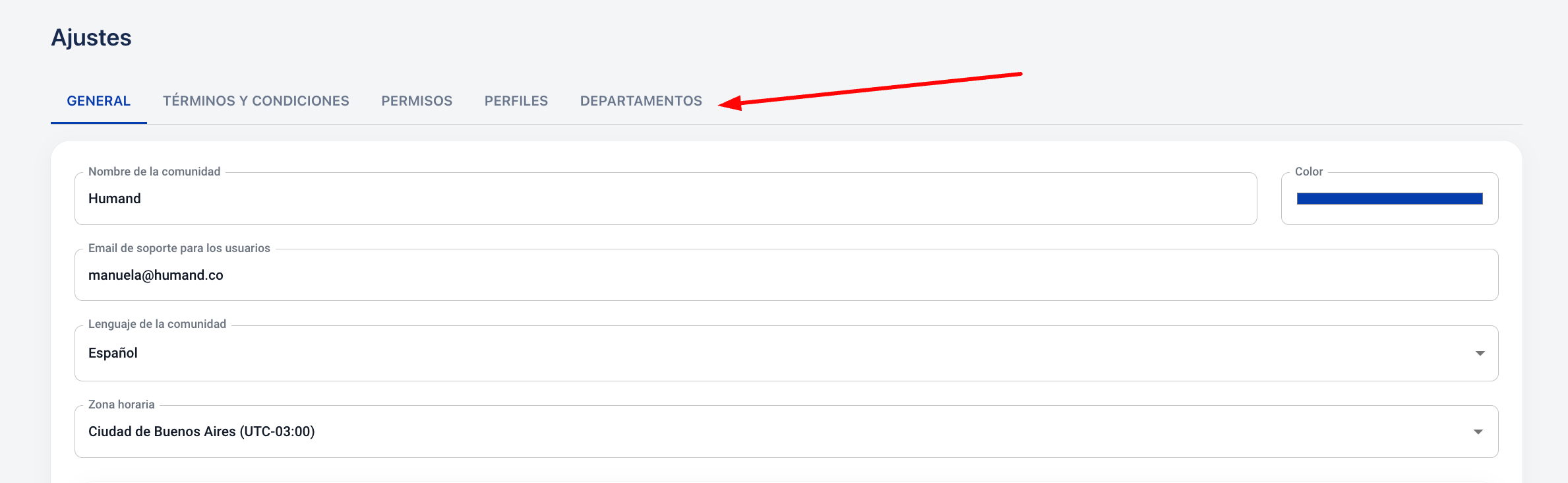 3. Clicar no separador "Departamentos".