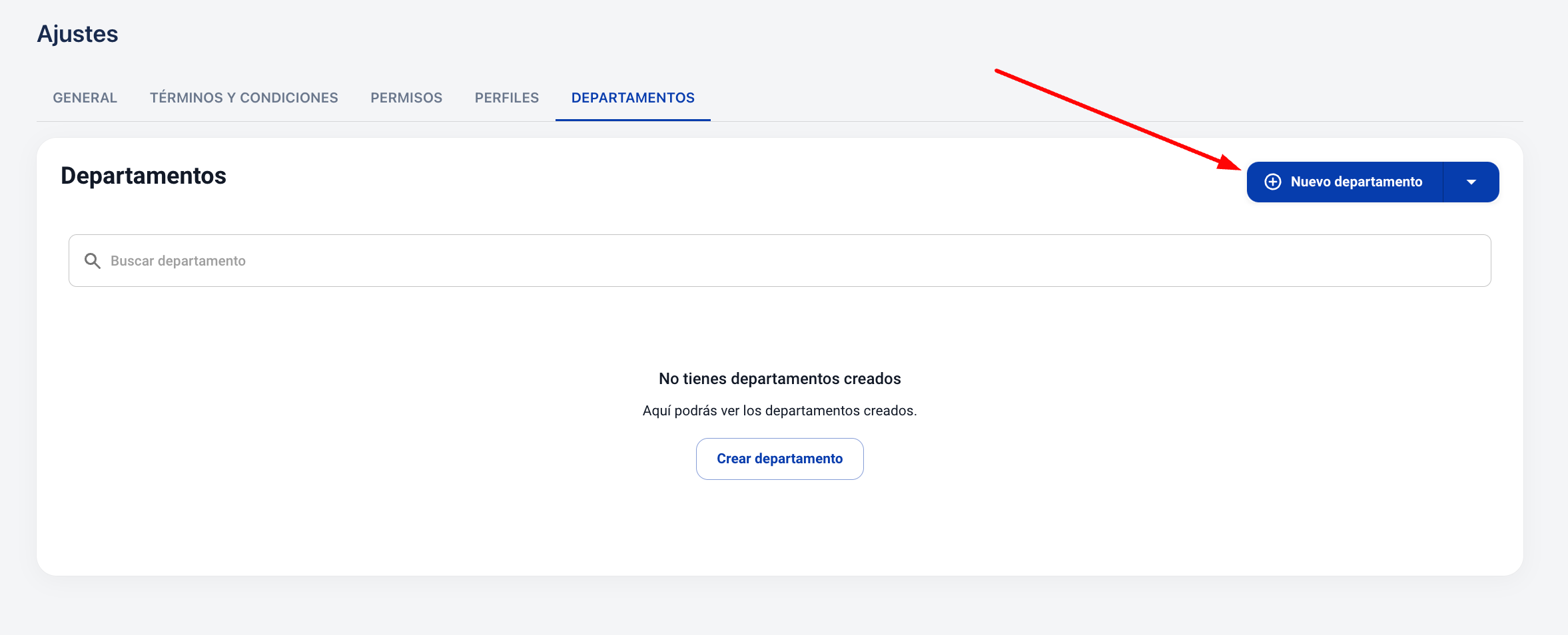 4. Selecionar "+ Novo departamento".