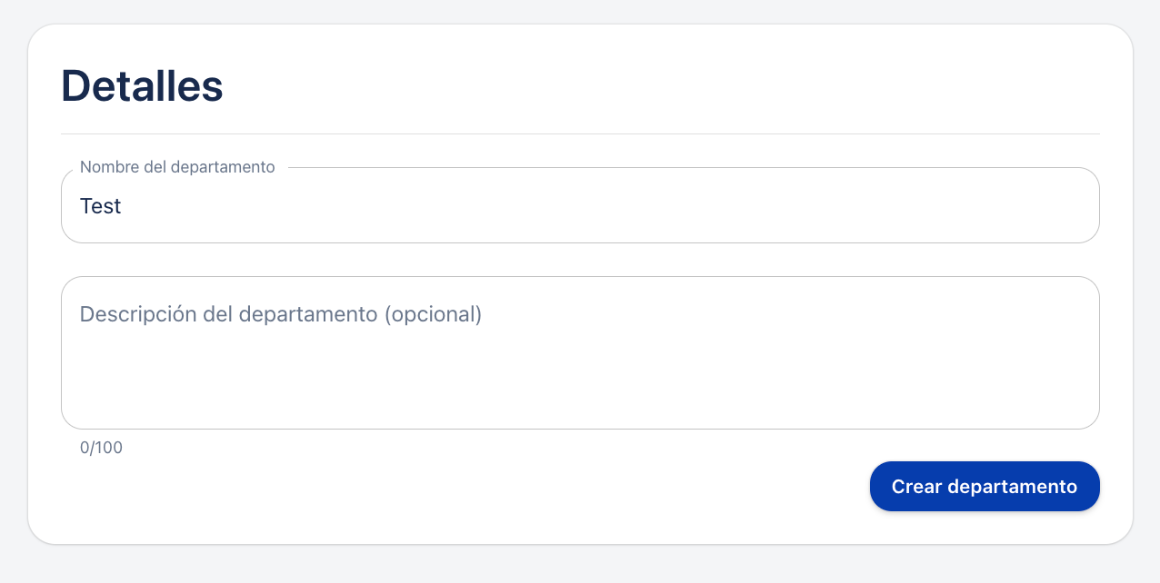 5. De seguida, deverás estabelecer um nome e uma descrição (opcional) para o departamento. Depois, clica em "Criar departamento".
