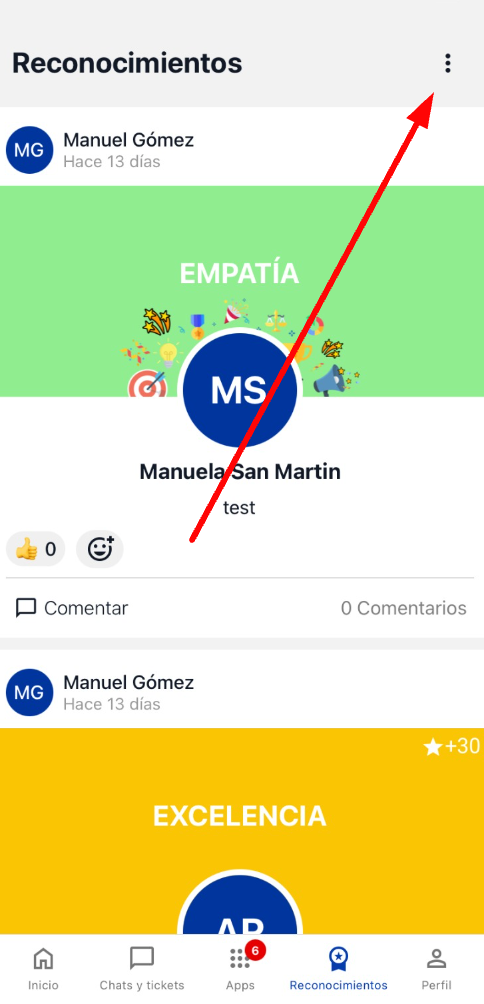 3. Pressiona o botão dos três pontos (⋮) e seleciona Dar reconhecimento.