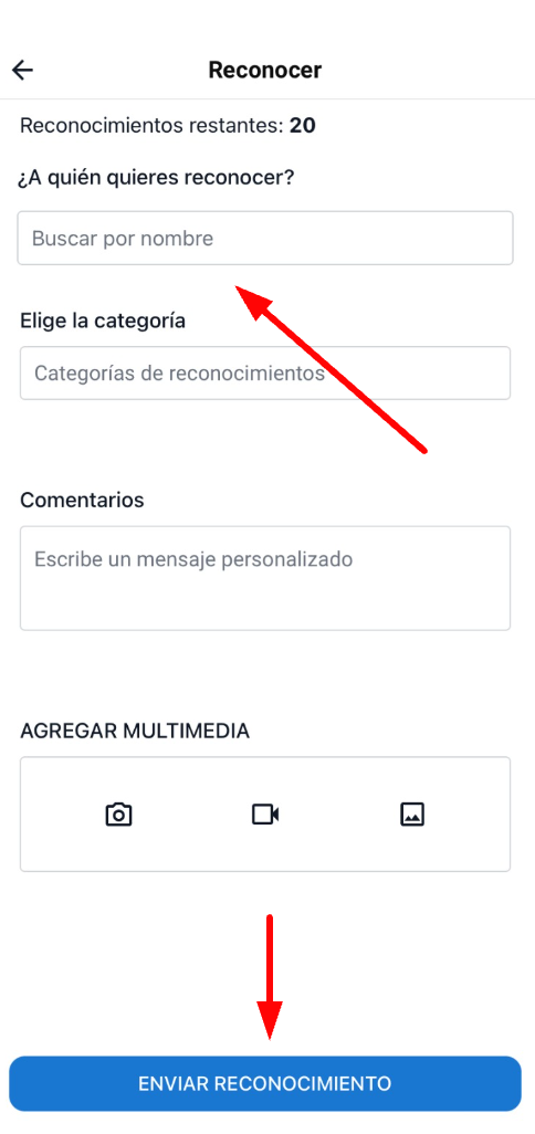 5. Depois de selecionar os utilizadores que queres reconhecer, pressiona em Enviar reconhecimento e pronto!