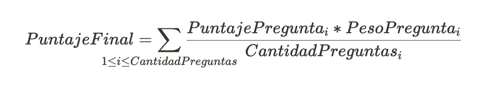 Finalmente, para o cálculo final da avaliação composta, são considerados também os pesos das seções (Perguntas e Objetivos):