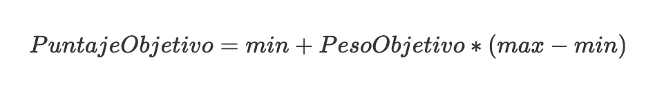 Para calcular a pontuação de um objetivo manual, utiliza-se a mesma fórmula que nas perguntas do tipo pontuação, onde cada resposta tem um peso determinado e os máximos e mínimos dependem da escala definida.