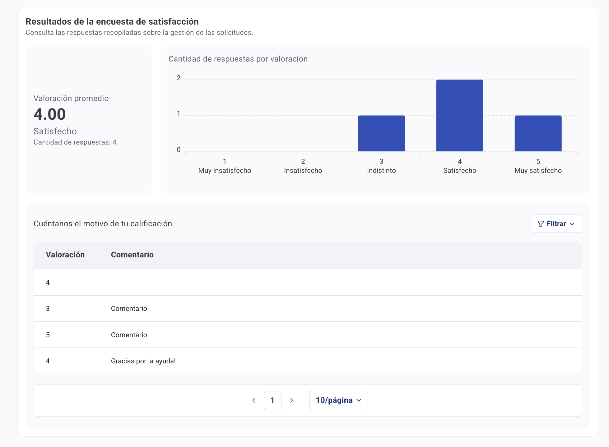 Além disso, é possível visualizar os resultados do inquérito de satisfação: