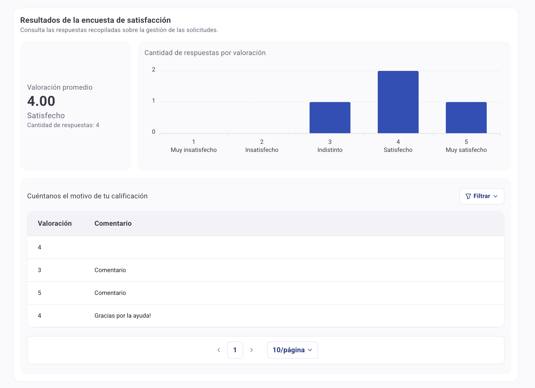 Dentro do módulo de Gestão de Serviços, os solicitantes poderão completar um questionário de satisfação uma vez que o seu pedido tenha atingido os estados terminais. Isto permite aos administradores acompanhar o desempenho dos agentes e melhorar a experiência do serviço.