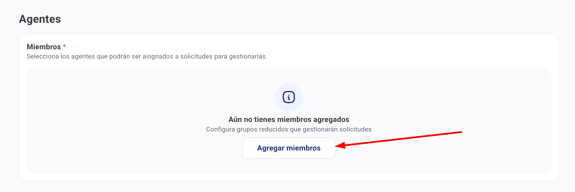 Por último, ao clicar no botão de “Adicionar membros”, podes atribuir agentes já criados ao nosso grupo de agentes.