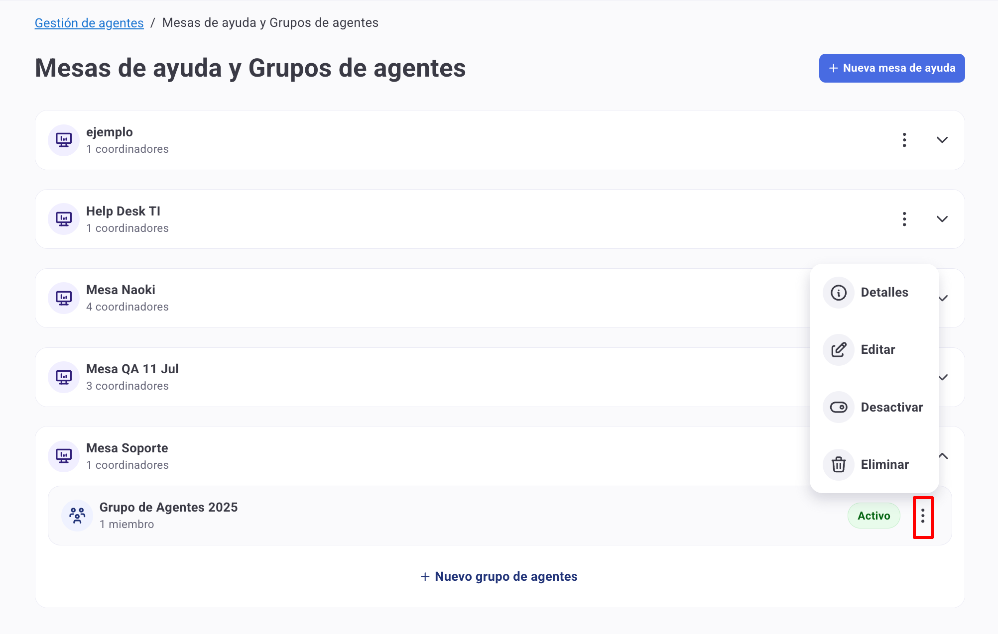 4. Uma vez dentro, deves expandir a mesa de ajuda já criada e selecionar a opção de “Criar grupo de agentes”.