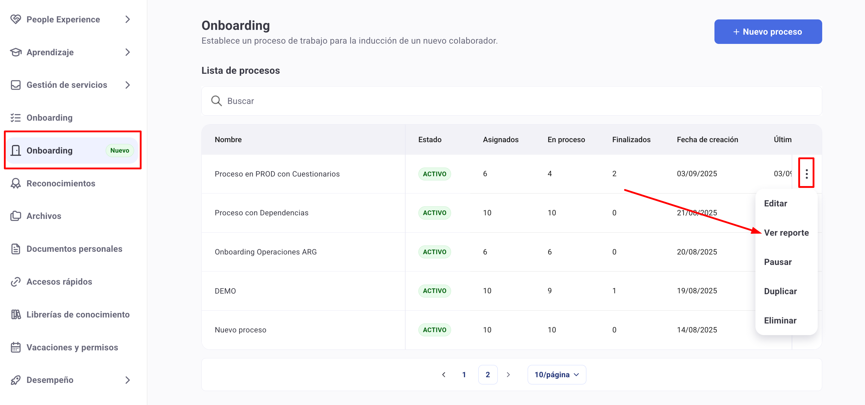 4. Uma vez dentro, poderás ver um painel com os principais indicadores do processo.