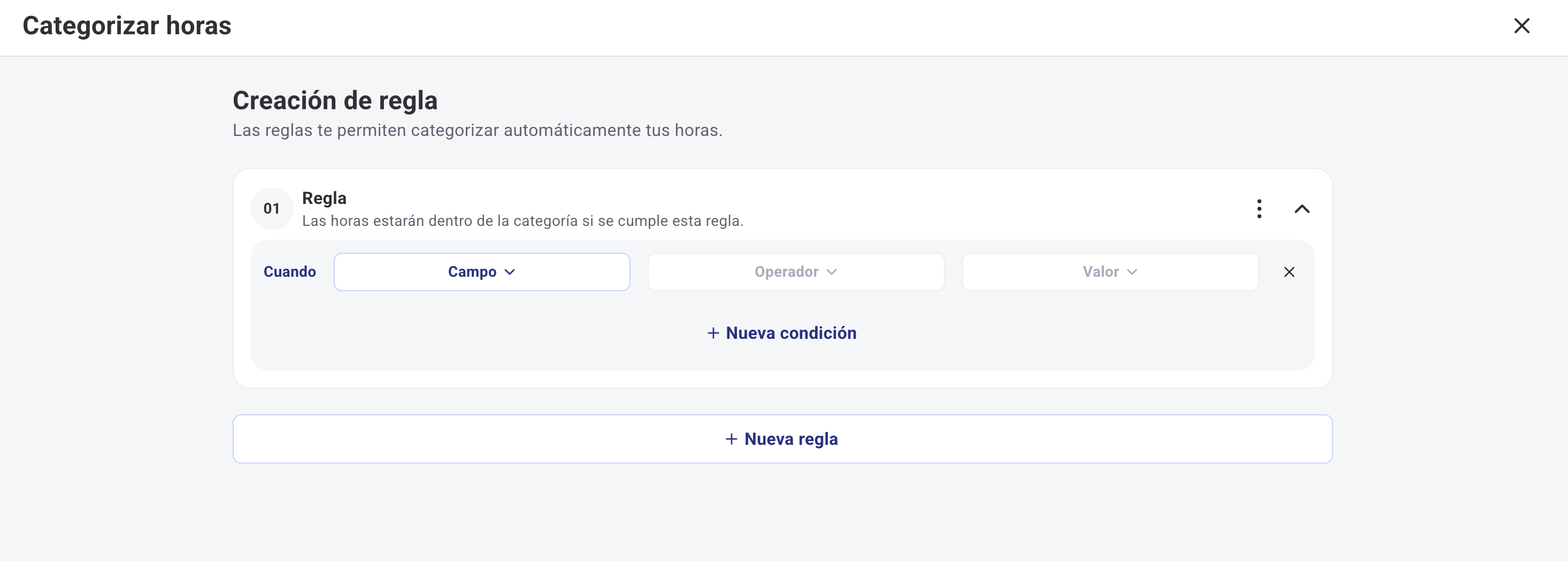 - Se uma categoria tiver várias regras, as horas resultantes acumulam-se dentro da categoria.